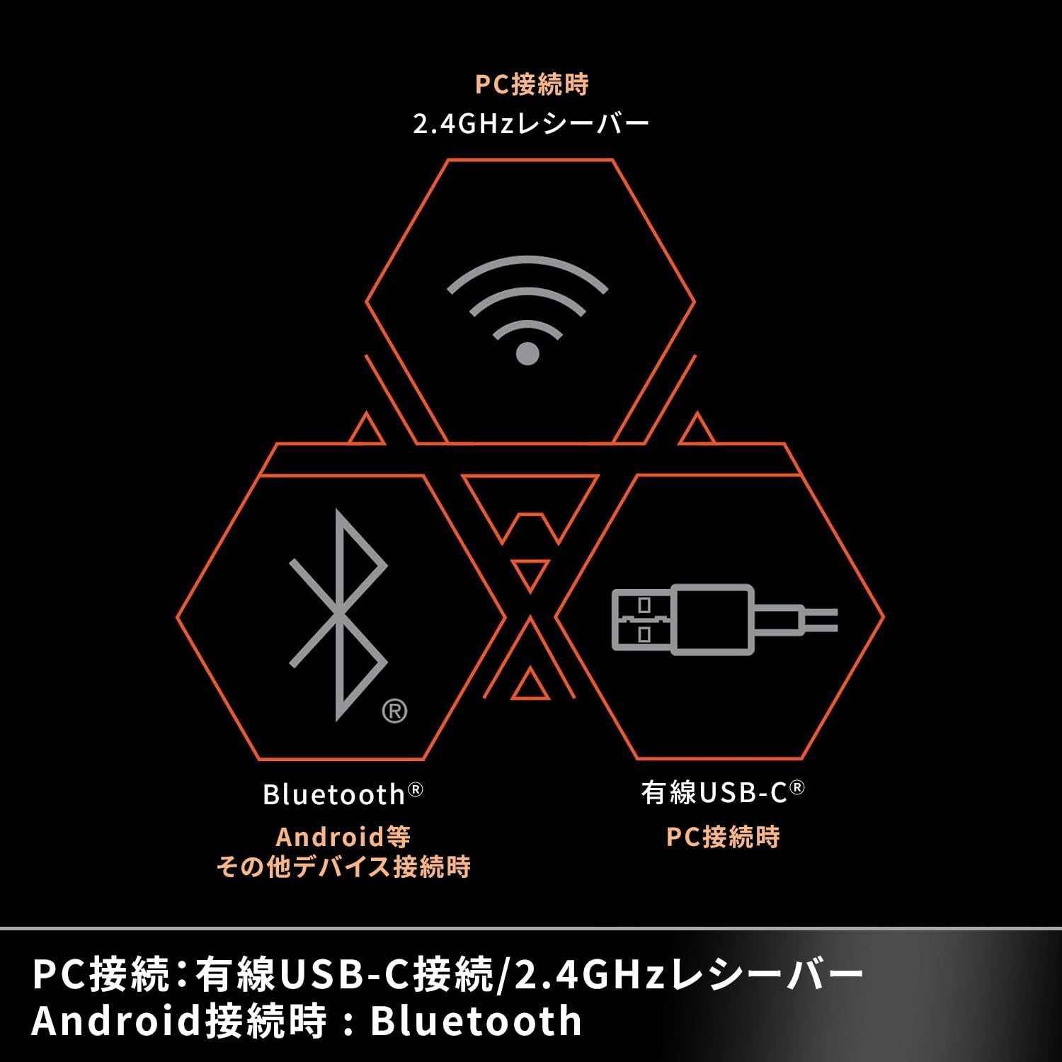 • 3-Ways to Connect – Connect to PC via wired USB-C or 2.4 GHz wireless, and connect to other Android devices like compatible smartphones, tablets and Smart TVs with Bluetooth