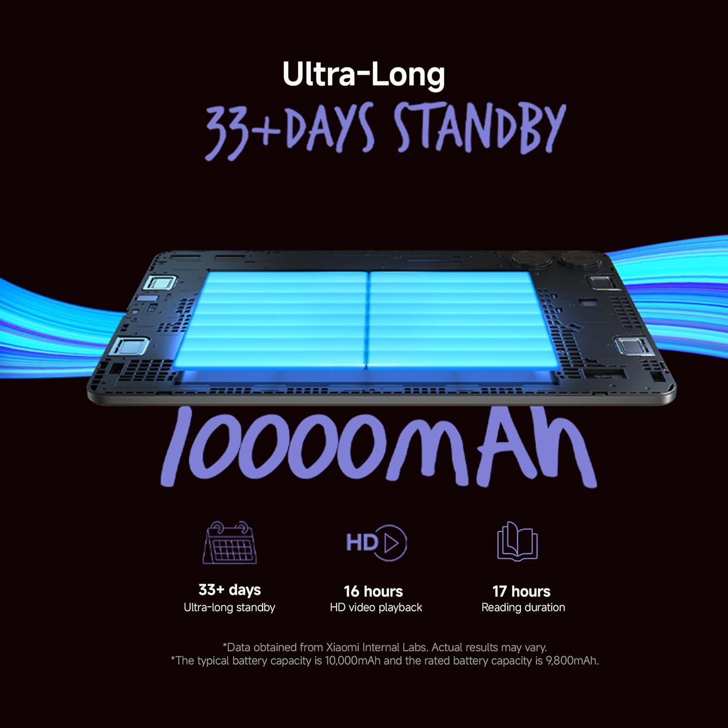 • BEST IN CLASS BATTERY: Unleash your adventures with the Redmi Pad Pro’s massive 10000mAh (typ) battery. Power through long days or weekend escapes – 33.9 days standby or 16 hours of HD video playback on a single charge. Need a digital detox? Enjoy up to 17 hours reading time, unplugged. And when you do need to refuel, the included 33W fast charger gets you back up and running in no time.