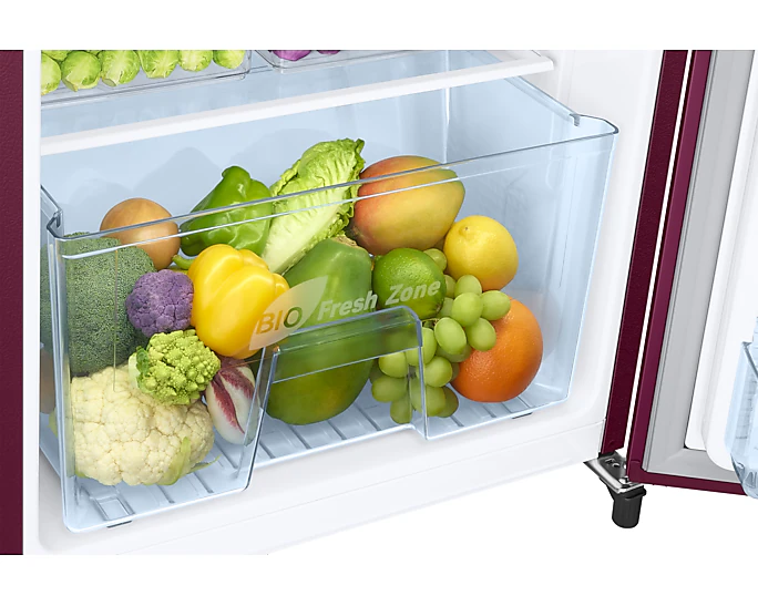 • Interior Description : Fresh Food Capacity : 165 Ltr | Freezer Capacity : 18 Ltr | Total no. of compartments : 1 | Shelves : 2 | Vegetable Drawers : 1 | Shelf Type : Toughened Glass Shelves | Anti Bacterial Gasket | Base stand with Drawer for additional space for non-refrigerated food items